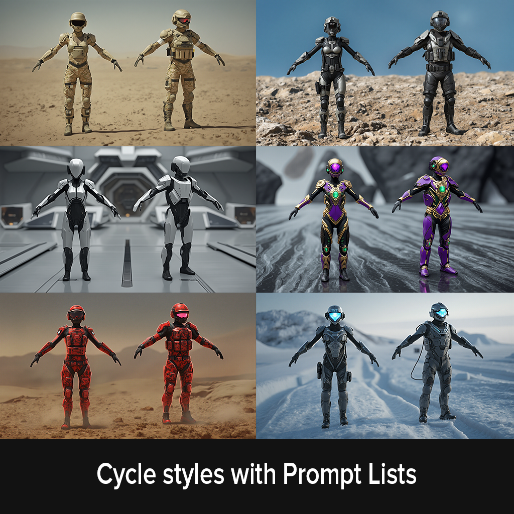 These workflows are built for high-quality, polished output. It lets you apply diverse styles to multiple props in one go, all guided by structured prompt lists. Designed for artists trying to get the maximum quality.